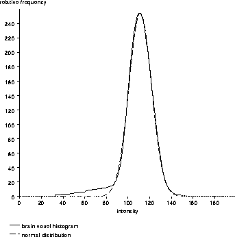 the brain voxel intensities are (approximately) normally distributed