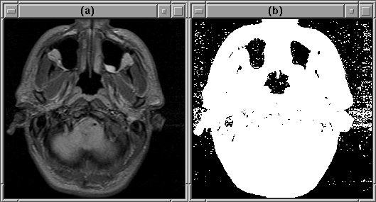 automatic threshold. (a) Original image. (b) Initial head mask.