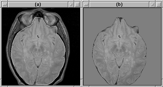 Figure 7.19: An MR image slice (a) before masking