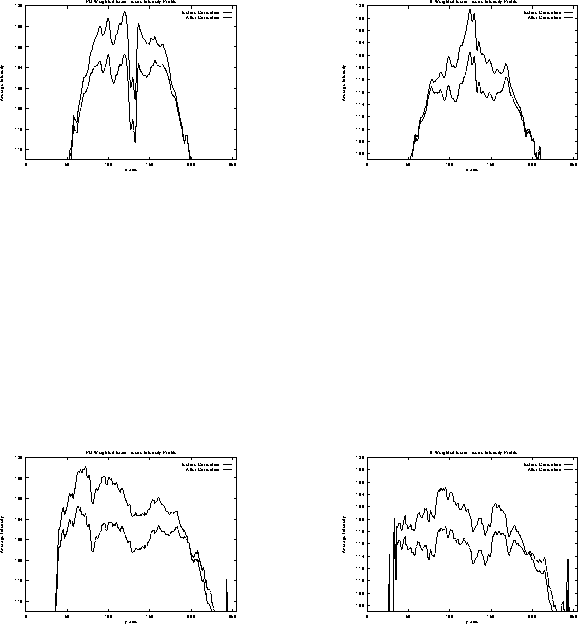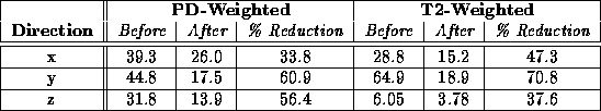 The reduction in RF inhomogeneity in the corrected data set is obvious from the brain tissue intensity profiles shown in Figure 8.31 and the variances listed in Table 8.11.