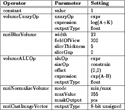 Table 8.13 lists approximate benchmarks for the Correct Intensity igraph. The majority of the execution time can be attributed to the computation of the logarithm and the exponent functions. Because the data sets have maximum resolution of 12 bits, these functions could be optimized using lookup tables.
