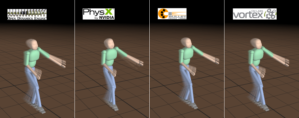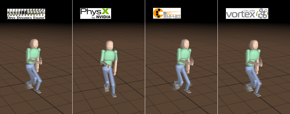 In the pursuit of pushing active character control into games, we have deployed a generalized physics-based locomotion control scheme to multiple simulation platforms, including ODE, PhysX, Bullet, and Vortex. We overview main characteristics of these simulation engines and illustrate the major steps of integrating active character controllers with physics SDKs, as well as the necessary implementation details. We also compare the robustness and performance of the locomotion control on different simulation engines. Our code is released online to encourage more interactions between the character control research community and the game development community.
